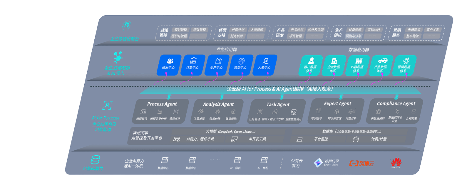 摩登7问学智车解决方案是一套基于AI技术的汽车行业智能化系统,,,覆盖从底层算力到顶层AI应用的全栈方案。。。方案由算力层、、模型层和应用层组成:算力层,,,方案支持多种一体机配置,,具备云端灵活部署、、、多云适配以及动态优化计算资源的能力;模型层,,摩登7问学平台版提供了企业级AI应用一站式构建与管理平台,,,,支持基于后训练强化技术的汽车企业专属模型的训练、、评测和运营;应用层,,摩登7问学DeepSeek版提供包括超级员工、、智能招采、、智能营销、、智能客服、、、AI for BI等一系列解决方案,,,可助力汽车行业实现数字化转型,,,,让管理更智能、、、响应更敏捷。。