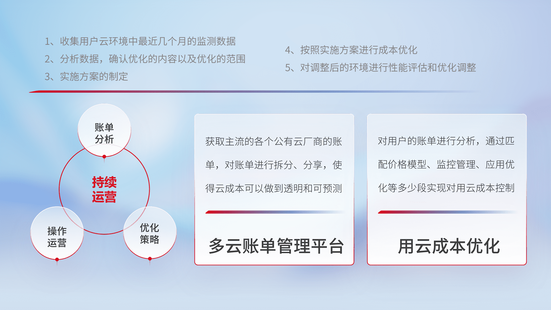 运用智能化工具分析云资源,,,提供日常费用可视化工具,,,,自动账单拆分,,,,成本优化云上费用,,,降本增效。。。
